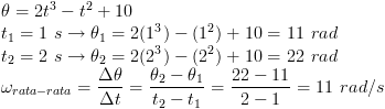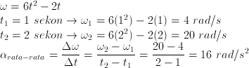 g) Percepatan sudut rata-rata antara t = 1 sekon hingga t = 2 sekon