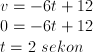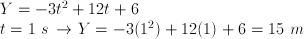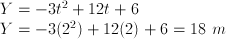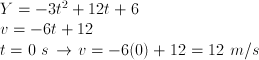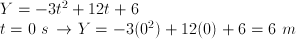 Soal No, 2). Sebuah partikel bergerak dari atas tanah dengan persamaan posisi Y = (−3t2 + 12t + 6 ) meter. Tentukan :