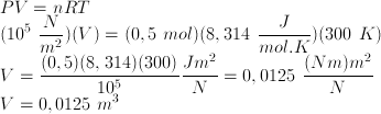 Soal No. 3) 16 gram gas Oksigen (M = 32 gr/mol) berada pada tekanan 1 atm dan suhu 27oC. Tentukan volume gas jika: