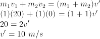 Kecepatan benda yang bertumbukan tidak lenting sempurna setelah bertumbukan adalah sama, sehingga v’1 = v’2 = v’