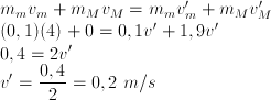 Hukum kekekalan momentum dengan kondisi kecepatan balok sebelum tumbukan nol dan kecepatan balok setelah tumbukan sama dengan kecepatan peluru setelah tumbukan, namakan v’