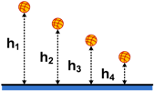 Soal No. 9). Bola karet dijatuhkan dari ketinggian 1 meter seperti gambar berikut !