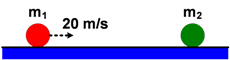 Soal No. 4). Bola merah bermassa 1 kg bergerak ke kanan dengan kelajuan 20 m/s menumbuk bola hijau bermassa 1 kg yang diam di atas lantai.