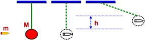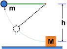 Soal No. 2). Bola bertali m memiliki massa 0,1 kg dilepaskan dari kondisi diam hingga menumbuk balok M = 1,9 kg seperti diperlihatkan gambar berikut!