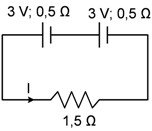 Soal No. 4). Dua buah baterai dengan ggl masing-masing 3 volt dan hambatan dalam 0,5 Ω disusun seri.