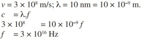 Soal No. 3) Gelombang elektromagnetik memiliki kelajuan 3 × 10^8 m/s. Jika gelombang tersebut memiliki panjang gelombang 10 nm, tentukan frekuensi gelombang tersebut.